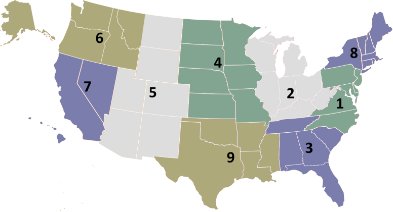| States: | Arizona, Colorado, East Montana (zip codes 59000-59399 and 59500-59599), New Mexico, West Texas (zip codes 79800-99999), Utah, Wyoming |