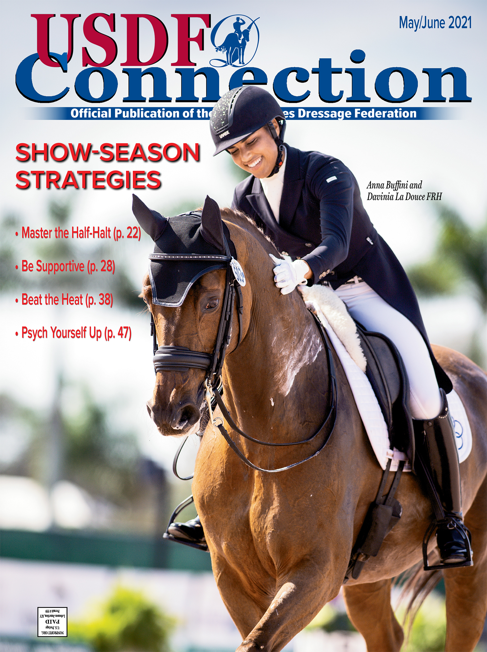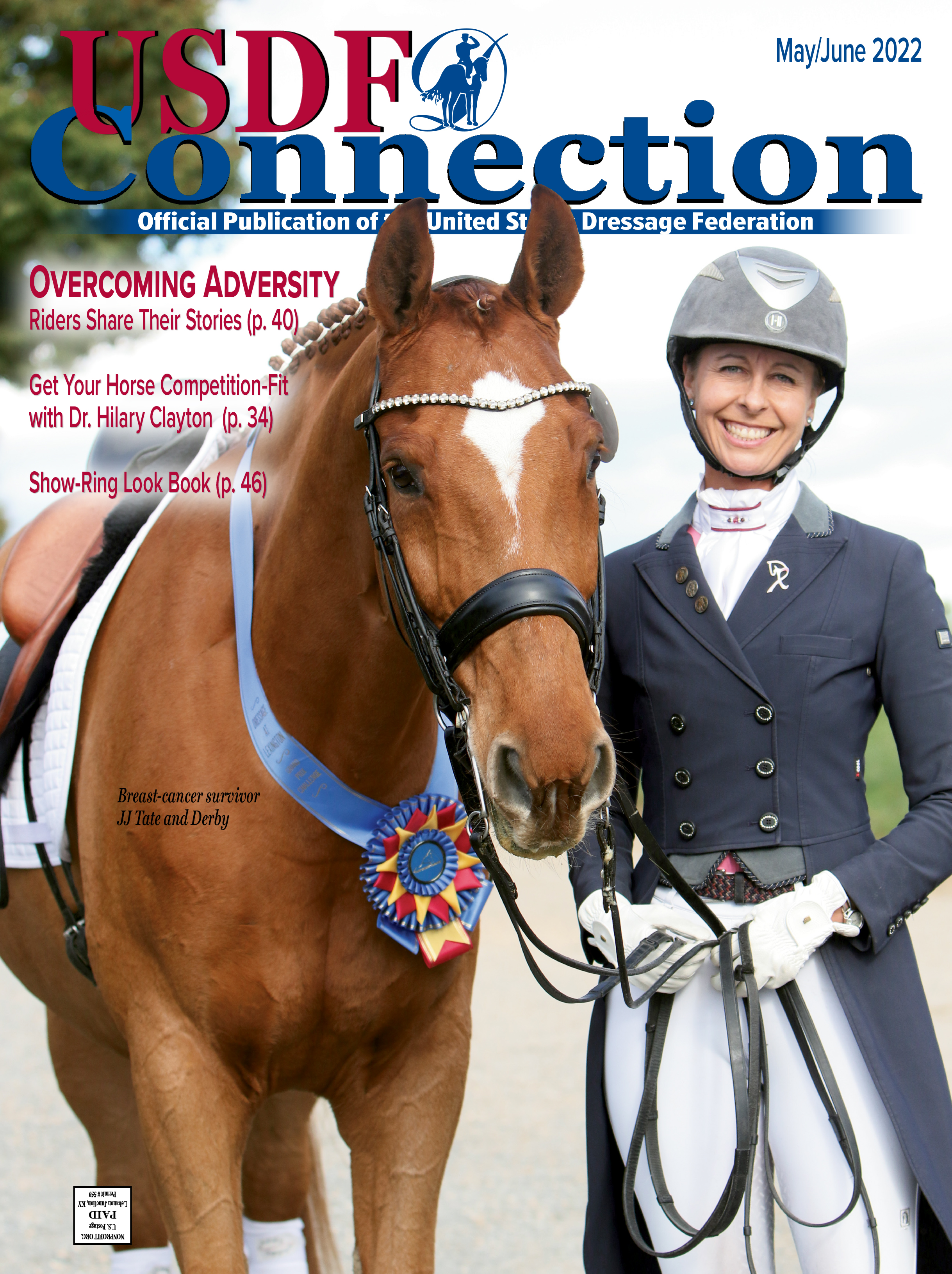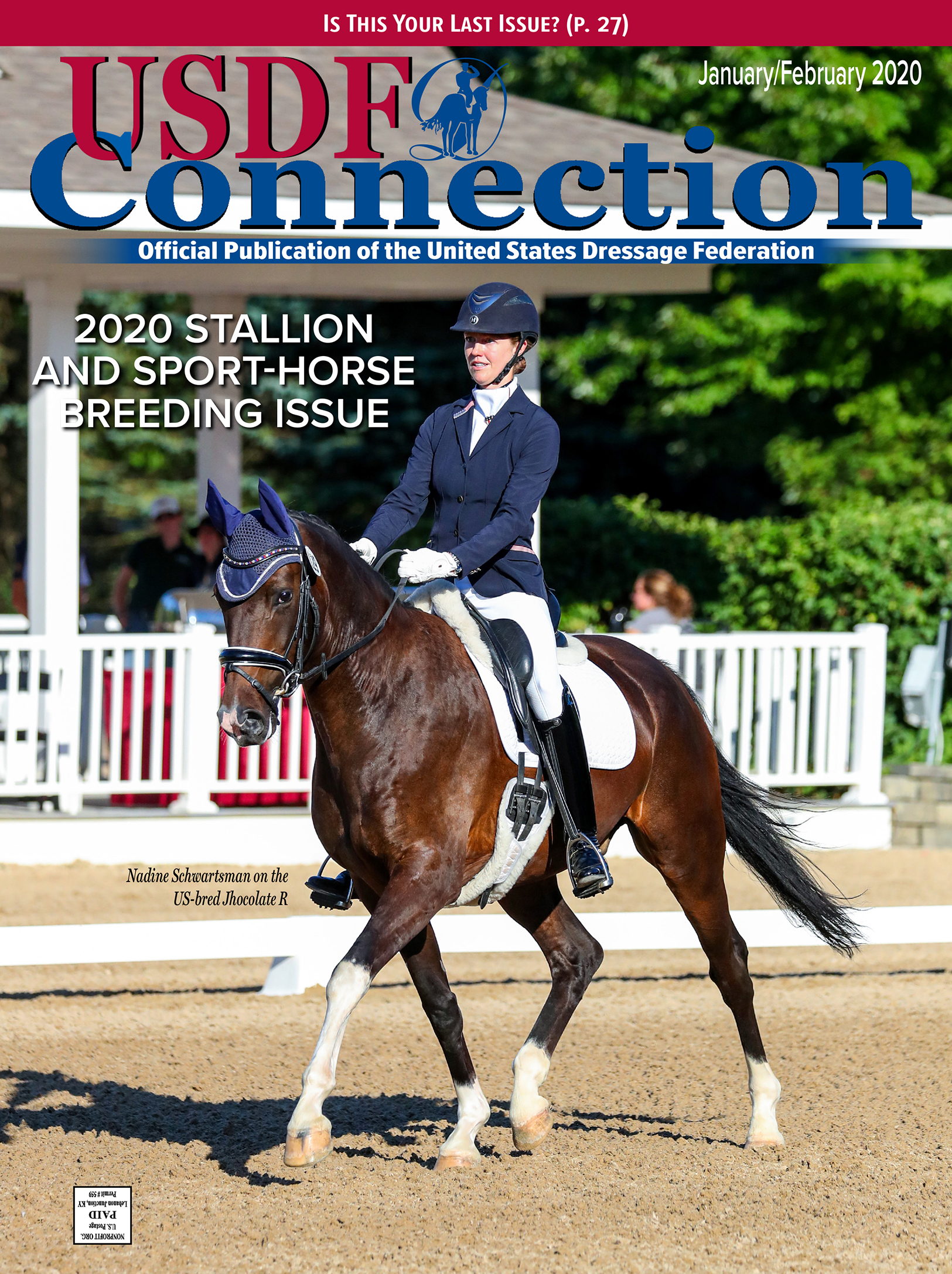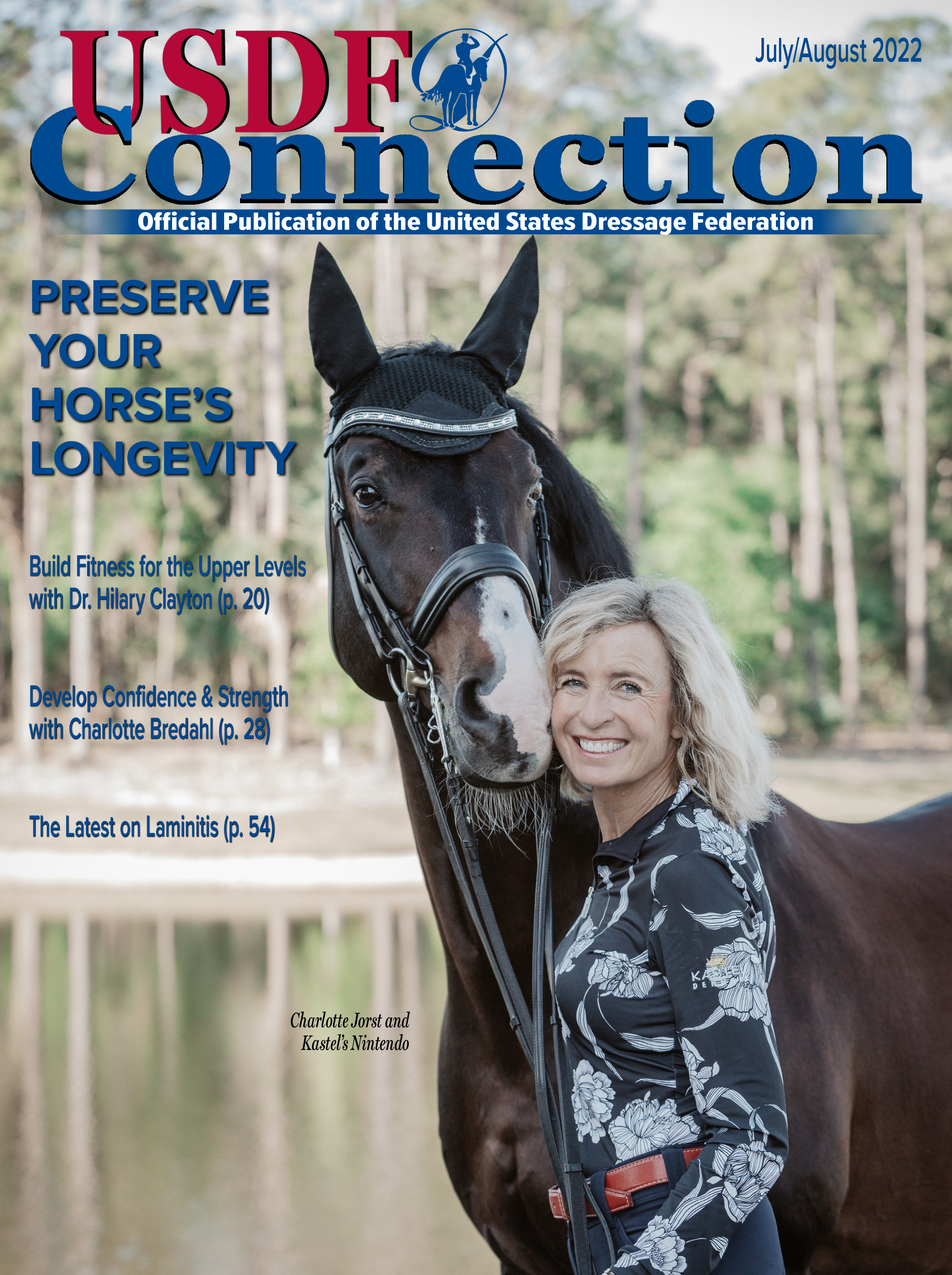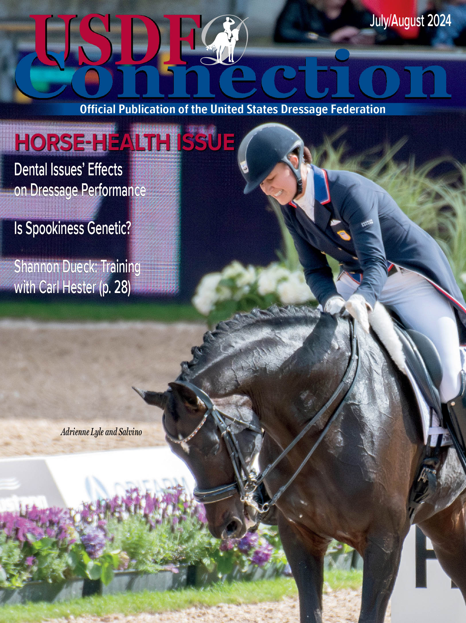 USDF Connection is mailed to members of the federation and subscribers. It offers an informative mix of USDF and American dressage news; a calendar of programs, events and horse shows; educational articles; feature stories; and commentary by many of the most recognized and respected names in dressage.